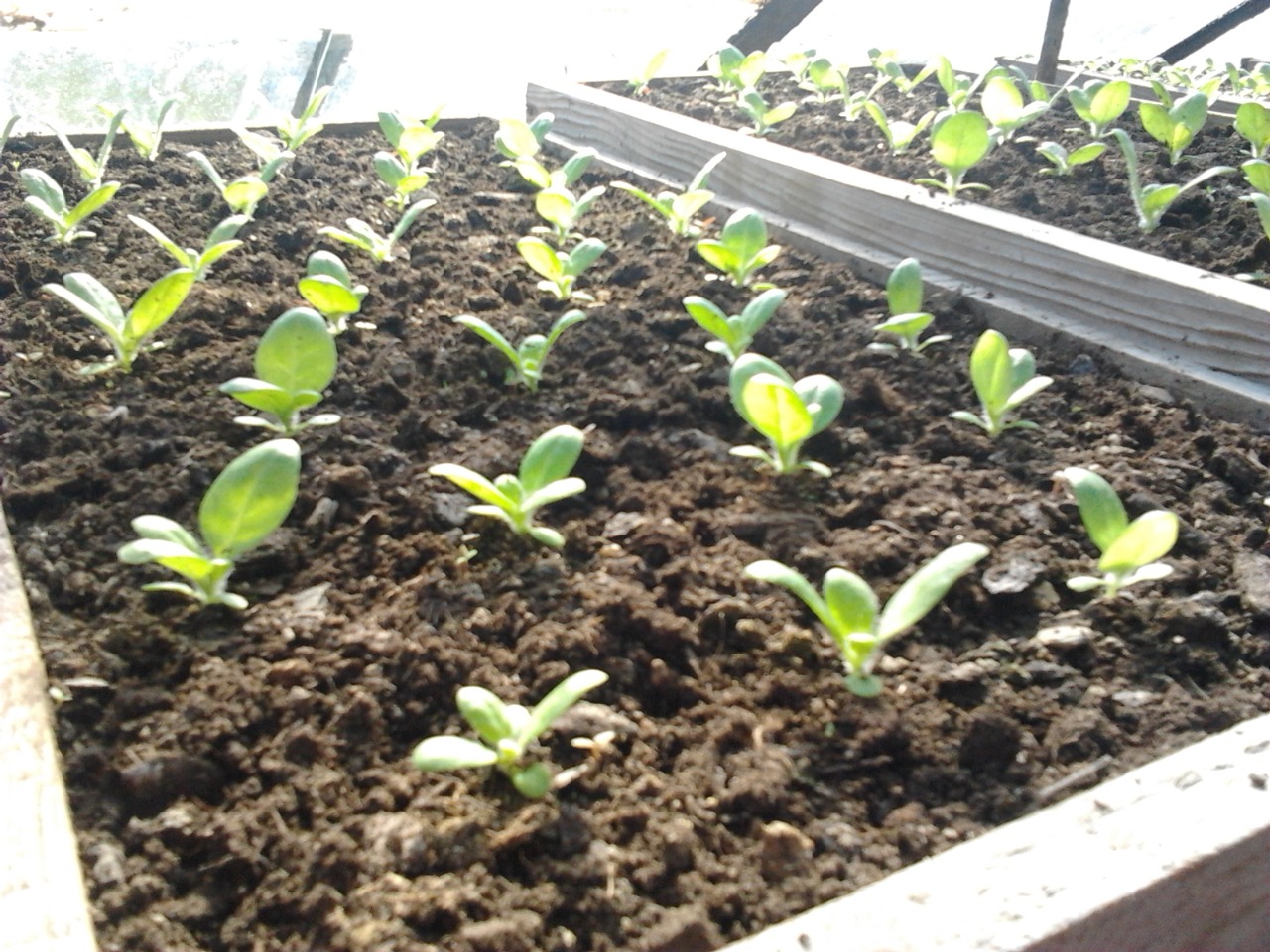 Jakmile semínka vyklíčí, bude jich opravdu hodně, pokud jste samozřejmě vše dodržovaly, tedy především jemné kropení, nebo mlžení. Nyní můžeme semínka pomoci hřebíku přepíchat, je dobré to provádět při vytvoření alespoň jednoho patra pravých listů. Přepíchané rostlinky necháme v truhlíku dorůst až do velikosti vhodné k sázení ven. Můžeme ještě jednou rozsadit do menších hrnků, budou se lépe vysazovat.